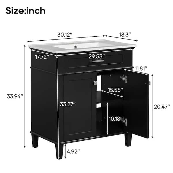30 in. W x 18 in. D x 34 in. H Single Sink Freestanding Bath Vanity in Black with White Ceramic Top
