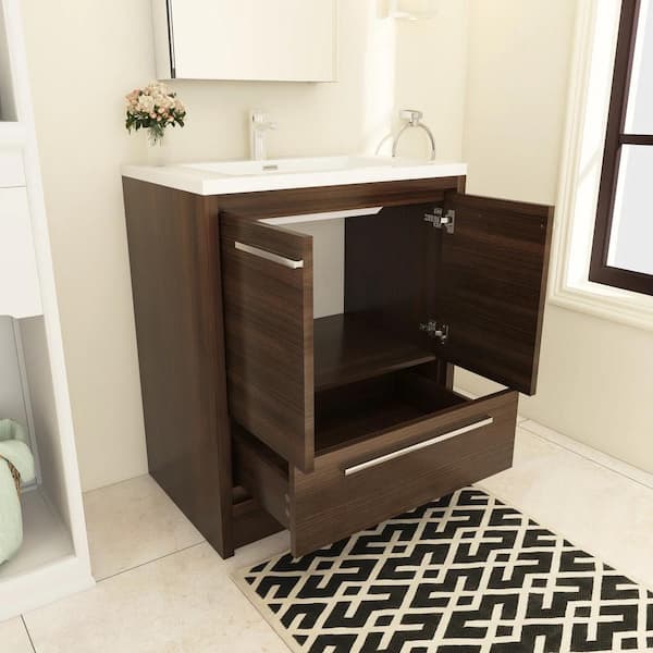 30 in. W x 20 in. D x 36 in. H Freestanding Bath Vanity in Grey Oak with White Solid Surface Top