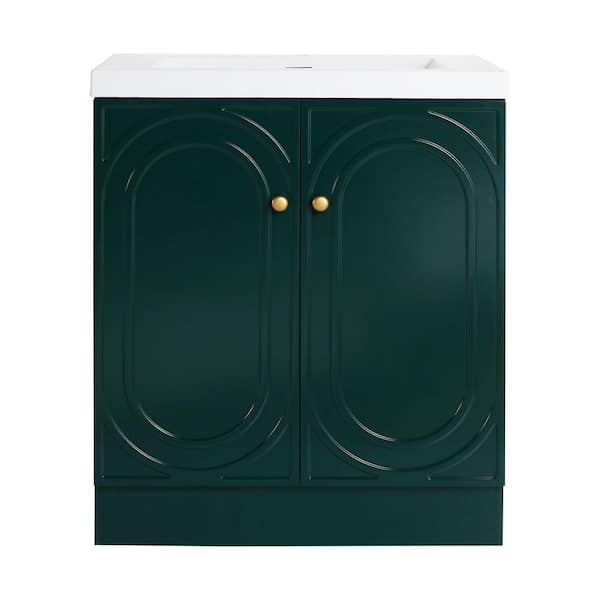30 in. W x 20 in. D x 36 in. H Single Sink Freestanding Bath Vanity in Dark Green with White Resin Top