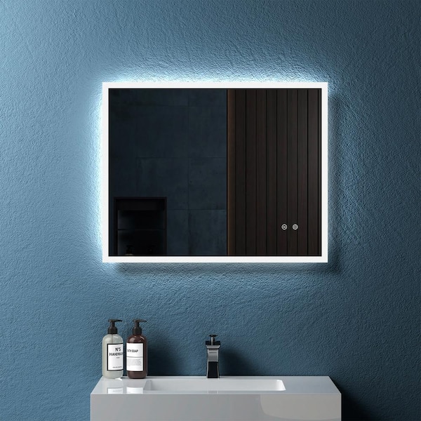 30 in. W x 24 in. H Rectangular Frameless Anti-Fog Wall Mounted LED Bathroom Vanity Mirror in White