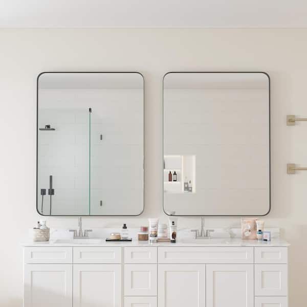 30 in. W x 40 in. H Rectangular Framed Wall Bathroom Vanity Mirror in Black