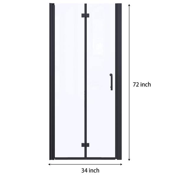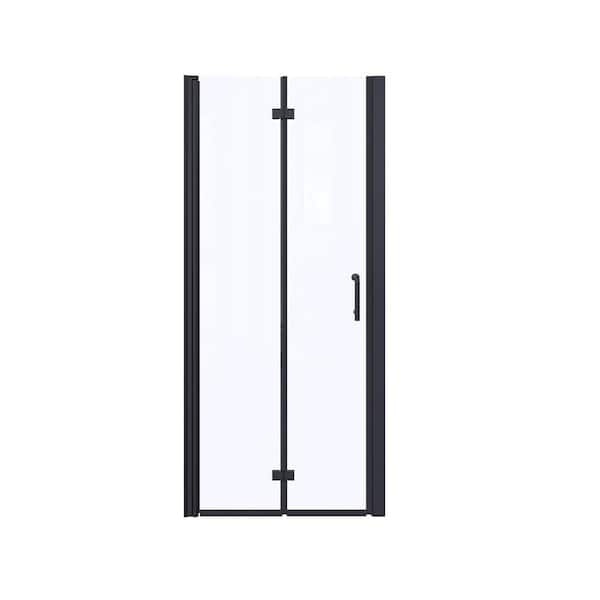 34 in. W x 72 in. H Bifold Semi-Frameless Shower Door in Matte Black Finish with Clear Glass