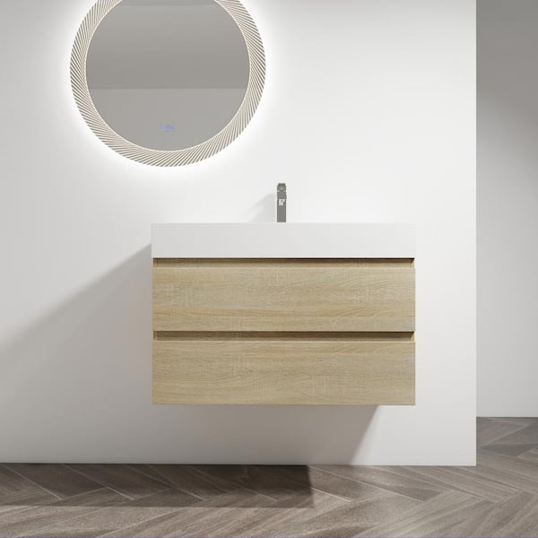 35.40 in. W x 18.13 in. D x 24.44 in. H Single Sink Wall Mounted Bath Vanity in Light Oak with White Resin Top