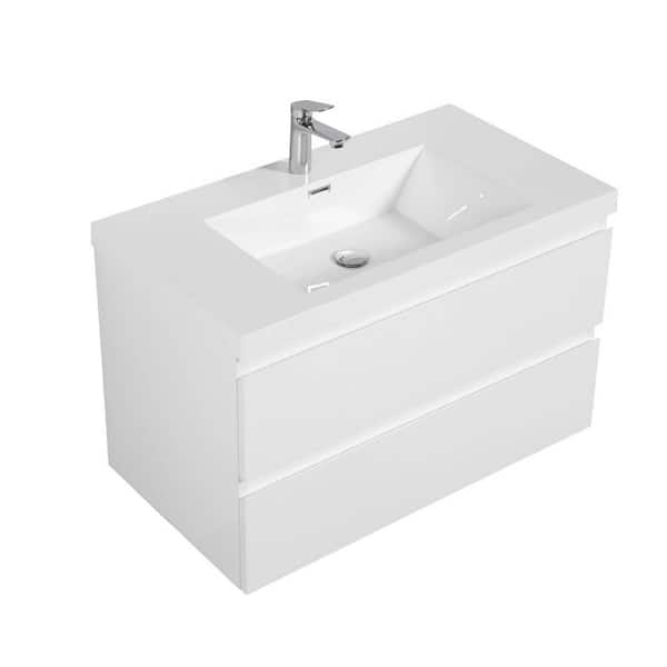 35.43 in. W Freestanding Bath Vanity in White with White Resin Top