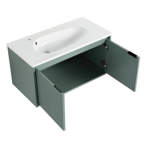 35.80 in. W 18.20 in. D 18.20 in. H Single Sink Wall Mounted Bath Vanity in Green with White Resin Top