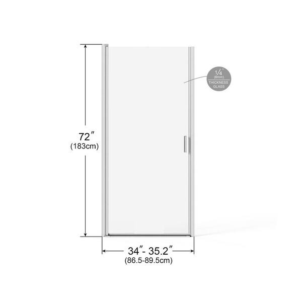 35 in. W x 72 in. H Pivot Semi-Frameless Shower Door in Silver Finish with Clear Glass with Black Acrylic Shower Base