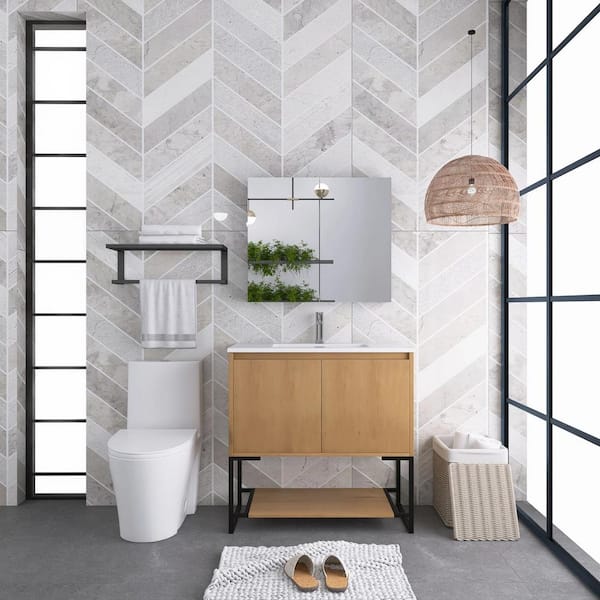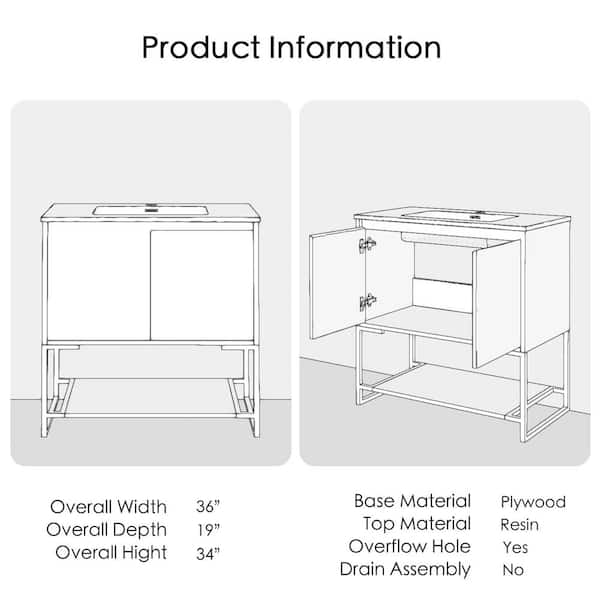 36 in. W X 19 in. D X 34 in. H Single Sink Freestanding Bath Vanity in Oak With White Resin Top