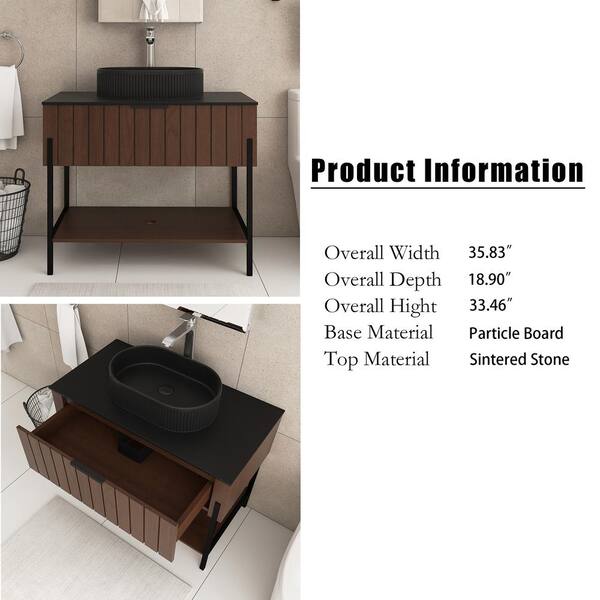36 in. W x 18 in. D x 20 in. H Single Sink Freestanding Bath Vanity in Dark Walnut with Black Ceramic Top