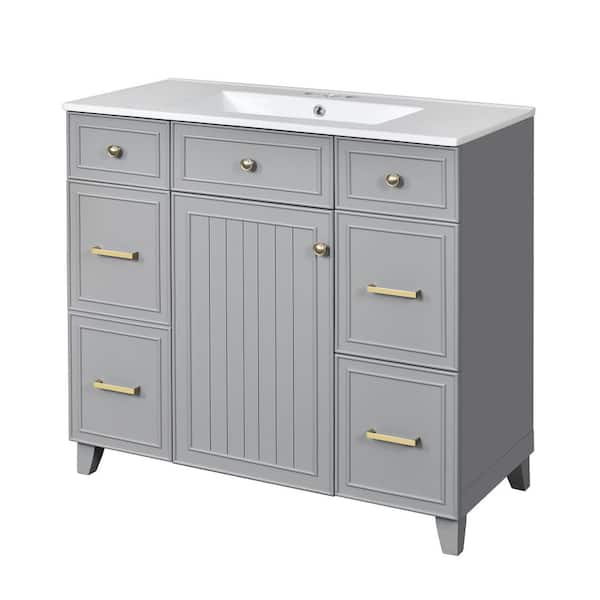 36 in. W x 18 in. D x 34 in. H Single Sink Freestanding Bath Vanity in Gray with White Ceramic Top