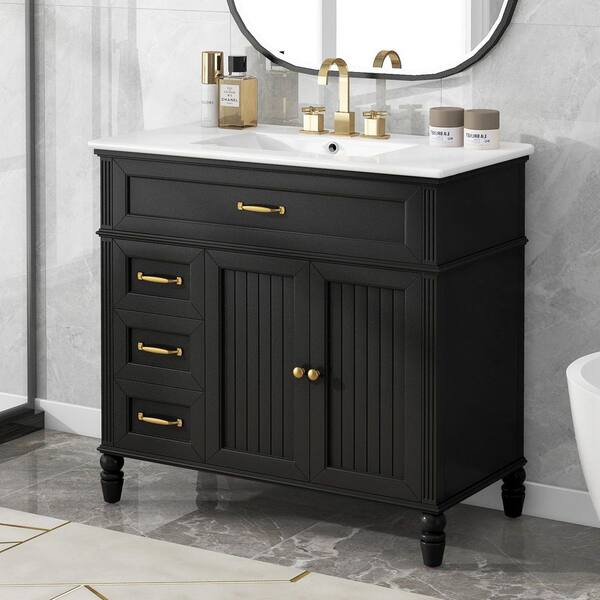 36 in. W x 19 in. D x 34 in. H Single Sink Freestanding Bath Vanity in Black with White Ceramic Top