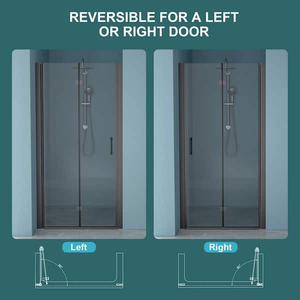 36 in. W x 72 in. H Bifold Semi-Frameless Shower Door in Black Finish with Clear Glass