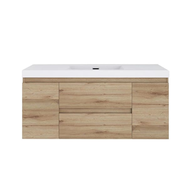 47 in. W x 19.5 in. D x 22.5 in. H Single Sink Wall-Mounted Bath Vanity in Natural Oak with White Resin Top