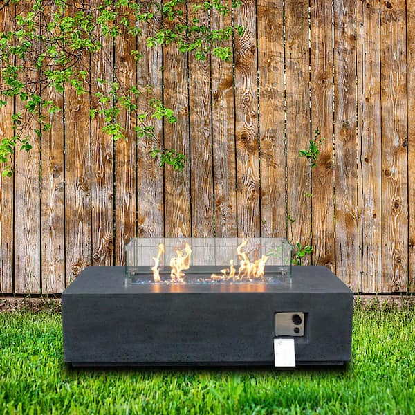 52.00 in. W x 14.00 in. H Concrete Rectangle Propane Burning Fire Pit Table in Black Gray