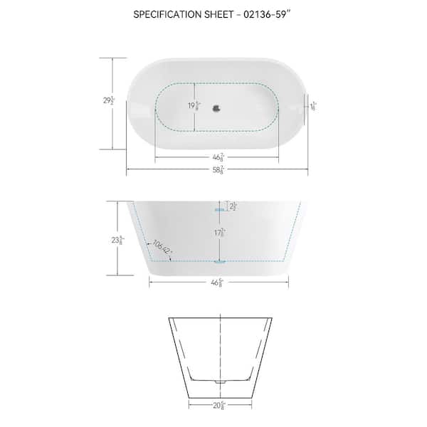 59 in. x 30 in. Acrylic Freestanding Soaking Bathtub with Center Drain in Glossy White