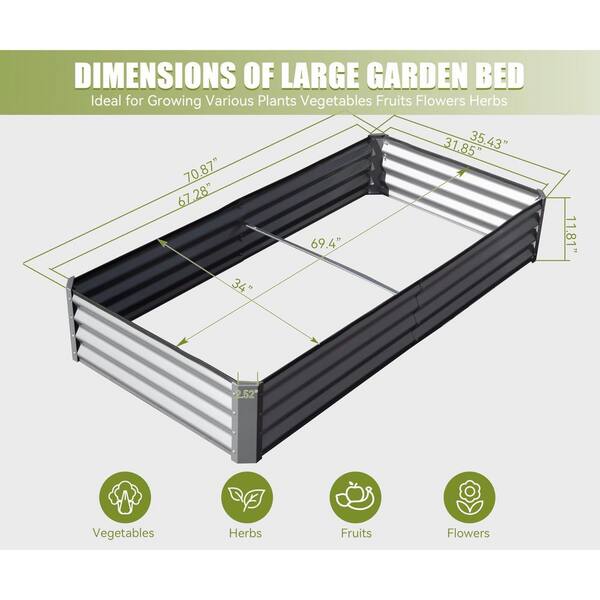6 ft. x 3 ft. x 1 ft. Silver Steel Outdoor Planter Garden Boxes