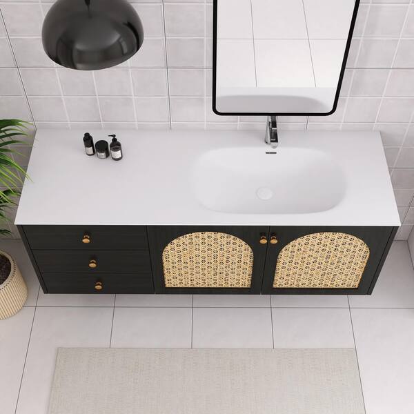 60.00 in. W Wall-Mounted Bath Vanity in Dark Oak with White Aluminum Alloy Top
