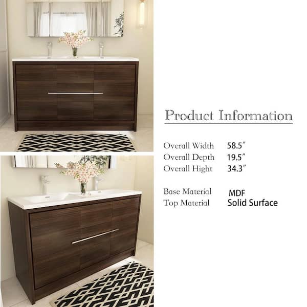 60 in. W x 20 in. D x 36 in. H Freestanding Bath Vanity in Grey Oak with White Solid Surface Top