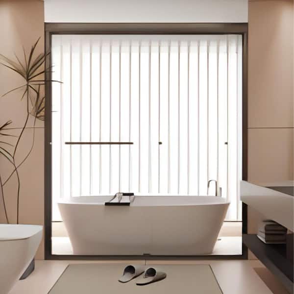 60 in. W x 72 in. H Double Sliding Semi-Frameless Shower Door in Matte Black Finish with Tempered Glass