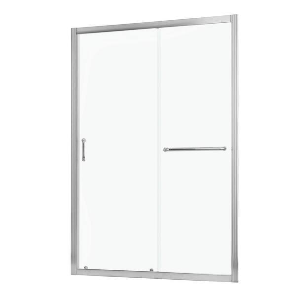 60 in. W x 72 in. H Single Sliding Semi-Frameless Shower Door in Chrome Finish with Clear Glass