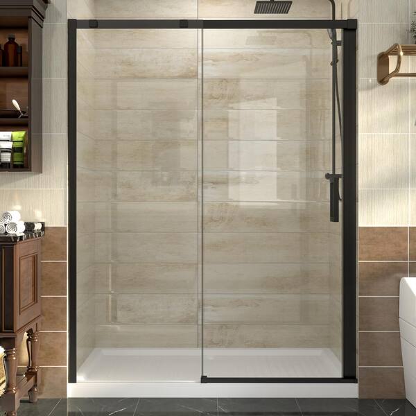 60 in. W x 74 in. H Single Sliding Framed Shower Door in Matte Black Finish with Clear Tempered Glass