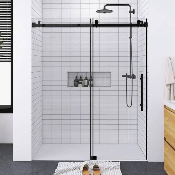 60 in. W x 76 in. H Single Sliding Frameless Shower Door in Matte Black with Tempered Glass