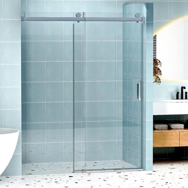 60 in. W x 76 in. H Sliding Frameless Shower Door in Chrome Finish with Tempered Glass