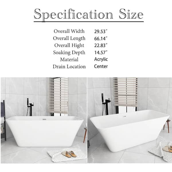 66 in. x 30 in. Soaking Bathtub with Center Drain in Glossy White