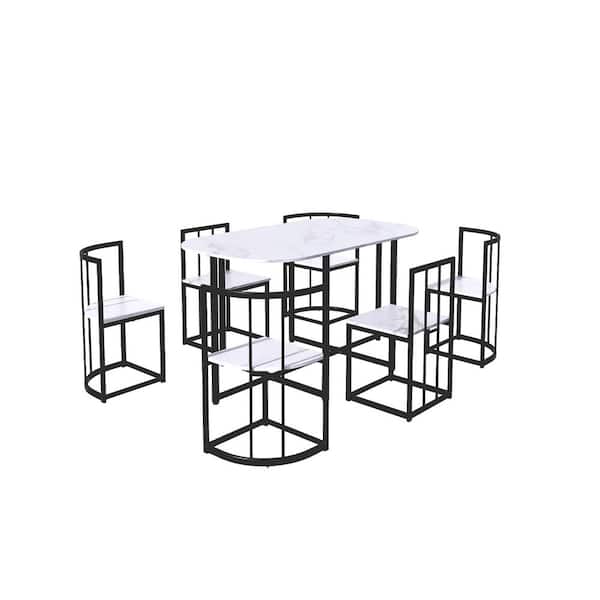 7-Piece Rectangular Black Wood Top Dining Room Set