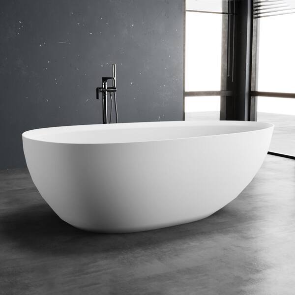 71 in. x 35 in. Stone Resin Solid Surface Freestanding Soaking Bathtub in Matte White