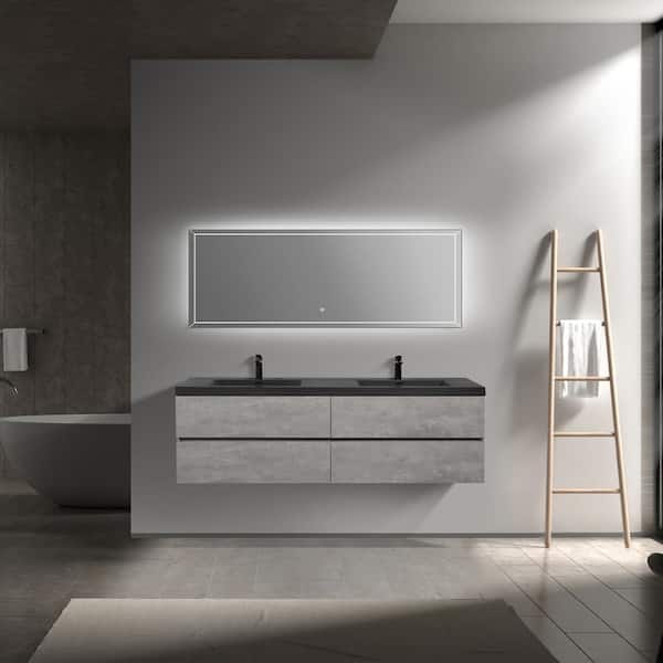 72 in. W x 20 in. D x 22 in. H Double Sink Floating Bath Vanity in Cement Grey with Matte Black Quartz Sand Top
