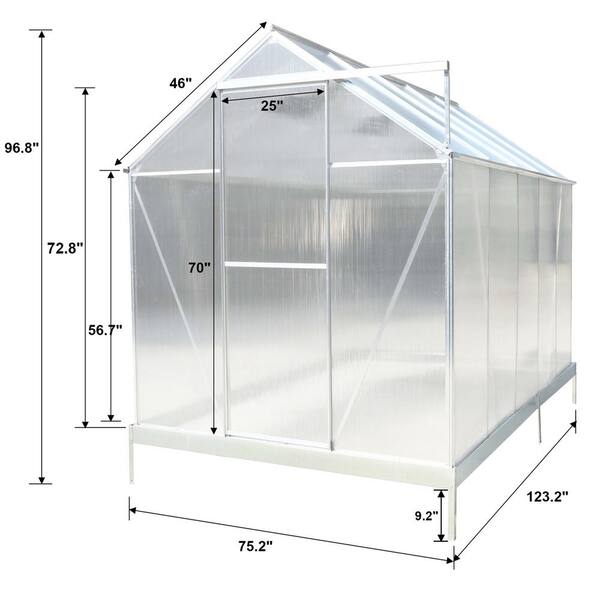 75.2 in. W x 123.2 in. D x 96.8 in. H Outdoor Walk-In Greenhouse
