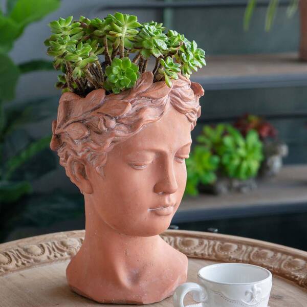 D 6 x 9 in. Brown Cement Visage Head Bust Planter Raised Garden Bed