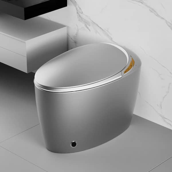 Elongated Bidet Toilet 1.28 GPF in Grey with Foot Sensor, LED Display, Night Light