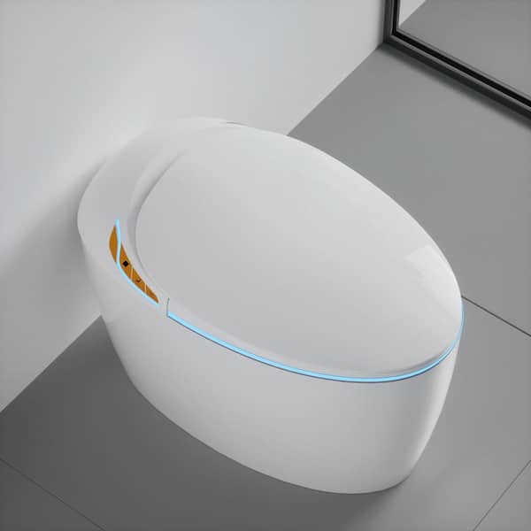 Elongated Bidet Toilet 1.28 GPF in White with Foot Sensor, LED Display, Night Light