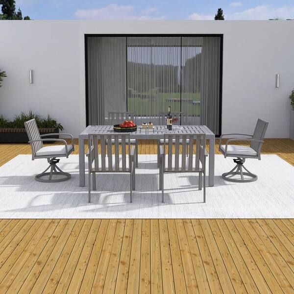 Gray Outdoor Dining Chair with Gray Cushions (2-Pack)
