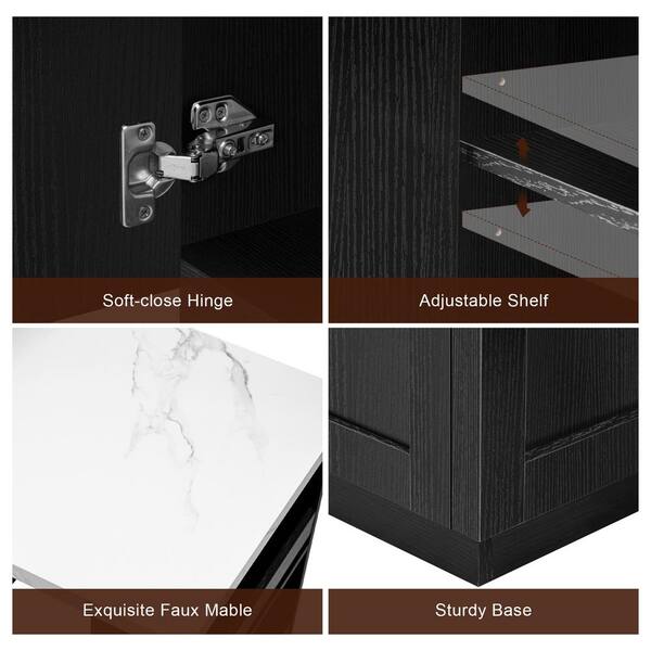 MDF Black Wood Kitchen Cart with Extendable Dining Table for 4-6 Person