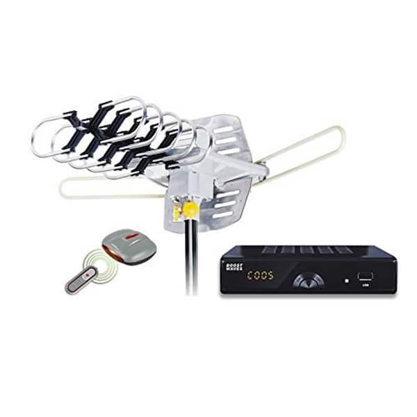 Amplified HD Digital Outdoor HDTV Antenna 360° Rotation UHF VHF FM Radio Remote Control for 2 TVs
