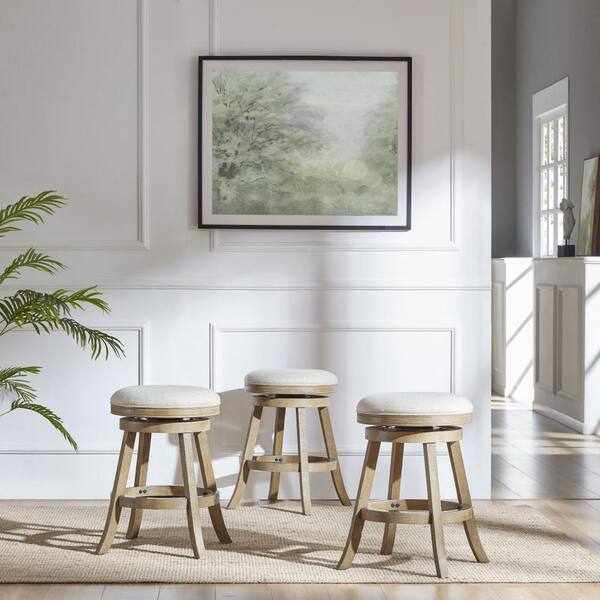 Fenton 24 in. Backless Wood Swivel Barstool in Driftwood Gray and Ivory