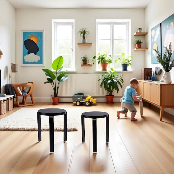 Mateo 18 in. Seat Height Round Backless Wood Stacking Stools - (Set of 2) - Black