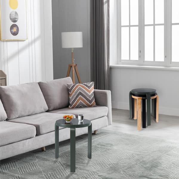 Mateo 18 in. Seat Height Round Backless Wood Stacking Stools - (Set of 2) - Spanish Moss