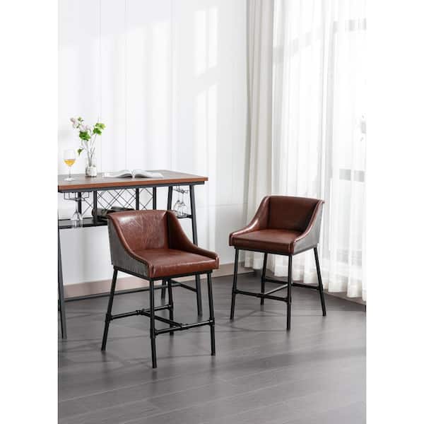 Parlor 29 in. Adjustable Desert Red Faux Leather Metal Bar Stool