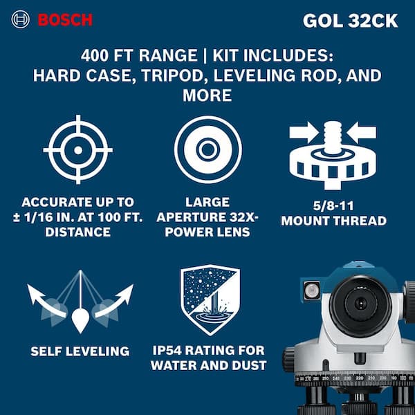 5.6 in. Automatic Optical Level Kit with a 32x Magnification Power Lens (5-Piece)