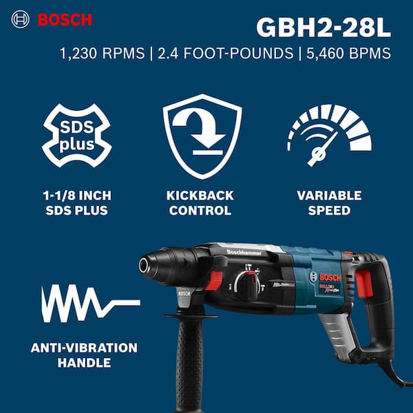 8.5 Amp Corded 1-1/8 in. SDS-Plus Variable Speed Concrete/Masonry Rotary Hammer Drill with Carrying Case