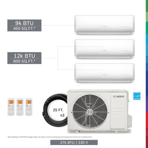 Gen 2/3 ENERGY STAR 3-Zone 27,000 BTU 2.25-Ton Ductless Mini Split Air Conditioner with Heat Pump 230-Volt