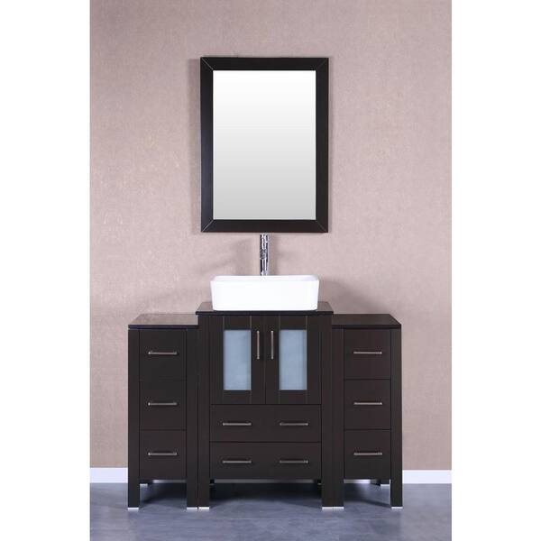 48 in. W Single Bath Vanity with Tempered Glass Vanity Top in Black with White Basin and Mirror