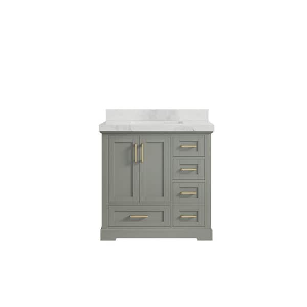 Boston 36 in. W x 22 in. D x 36 in. H Single Sink Bath Vanity Center in Evergreen with 2 in. Calacatta Nuvo Quartz Top