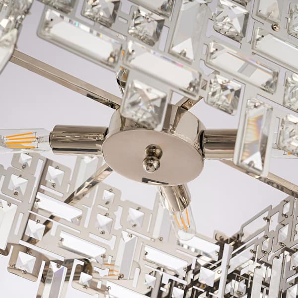 Boswey 4-Light Clear Hexagonal Crystals Square Chandelier for Kitchen Island with No Bulbs Included