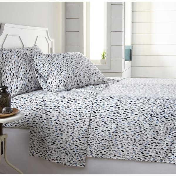 Botanical Leaf 4-Piece Blue Leaf on White Microfiber Full Sheet Set