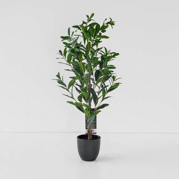 Botanika, 34 .43 in. Green Artificial Petite Olive Tree in Black Pot