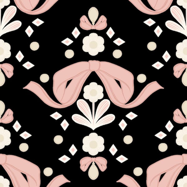 Bow Damask Black Peel and Stick Wallpaper Sample